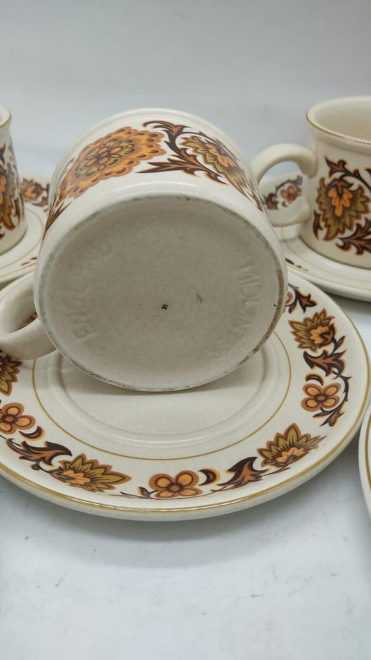 10-piece Stonehenge Midwinter Teacups and Saucer Set, Mid-Century Retro Vintage