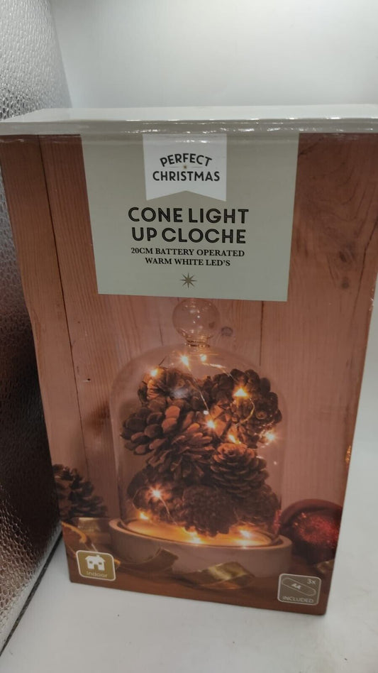 Perfect Christmas Battery Operated Cone Light Up Cloche. Warm White. Boxed