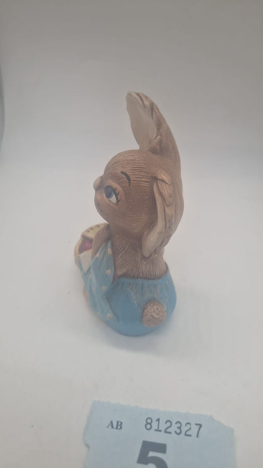 Pieface Pendelfin Rabbit Hand Painted Stoneware Pottery Ornament Blue Blanket