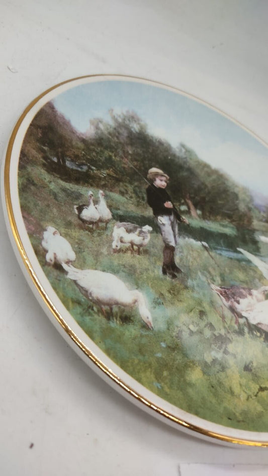 Royal Overhouse China Plate "Tending The Geese" by Luigi Chialiva