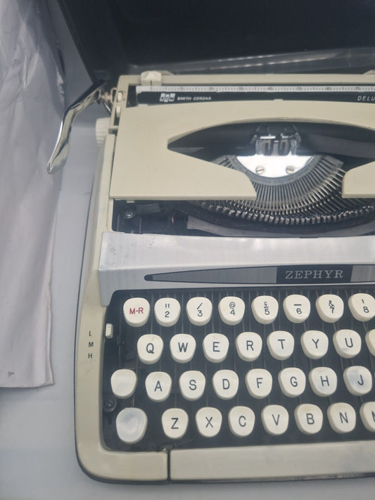 Vintage 1960's SCM Smith-Corona Zephyr Deluxe Portable Typewriter & Cover.