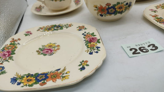 Vintage Set of 7 Wedgewood Tea 2 Cups and Saucers 2 Plates Dish Floral
