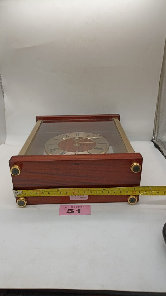 Vintage Seiko Quartz Mantle Clock Gold Tone with Mahogany Wood Cade Working Used