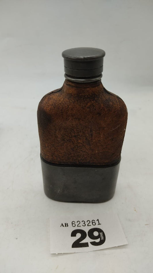 Vintage, Pewter & Leather Hip Flask Screw Top 100ml