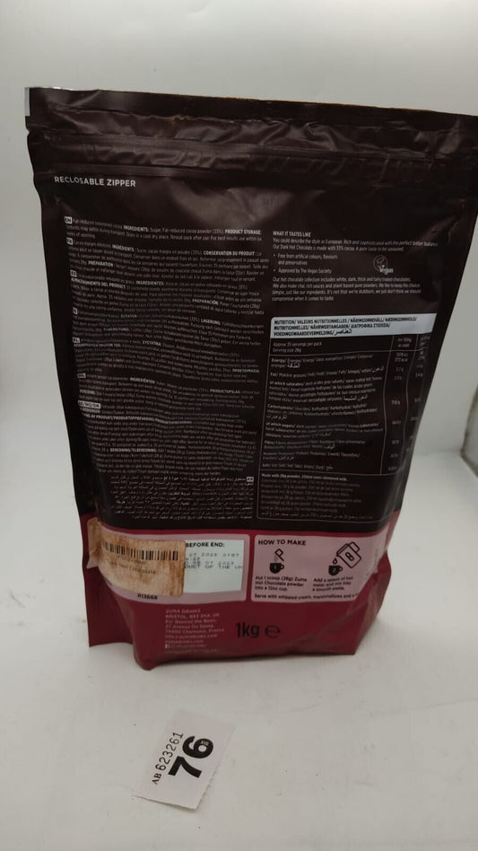 Zuma Dark Vegan Hot Chocolate Powder 1kg Barista Coffee Supplies 33% Cocoa