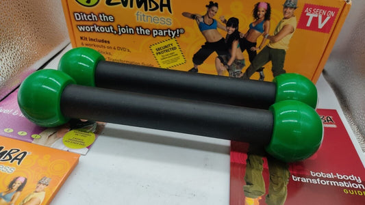Zumba Fitness Total Body Transformation System 4 DVDs Toning Sticks Guide 2010