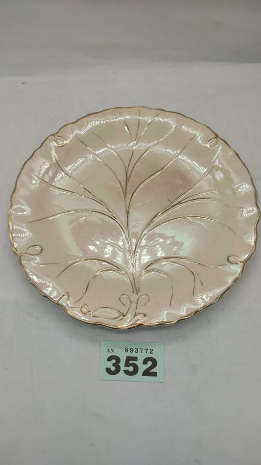Cake Plate with Leaf Pattern & Pearlescent Paint Effect Fine Bone China Vintage