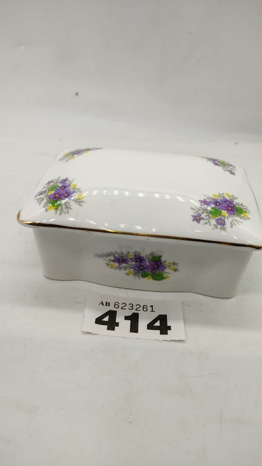 Crown Staffordshire Fine Bone China Trinket Box Florals Made in England, Vintage