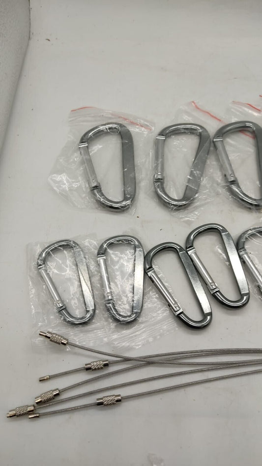 Efixtk 6 Pack 8cm Carabiner Clips with Keyrings & Wire Keychain ALuminum Locking