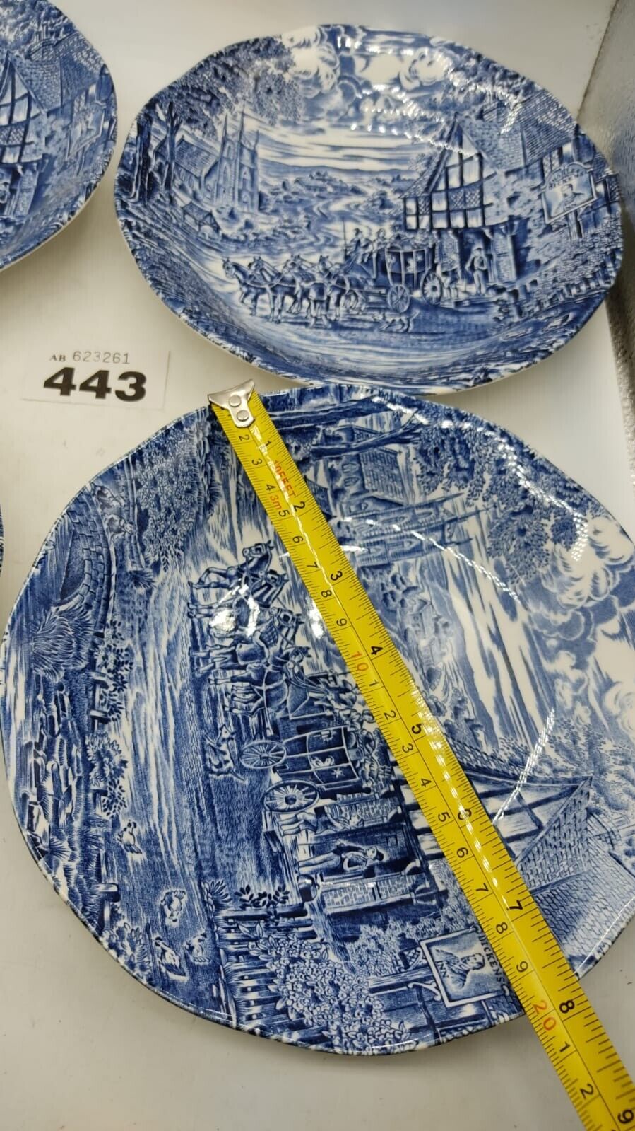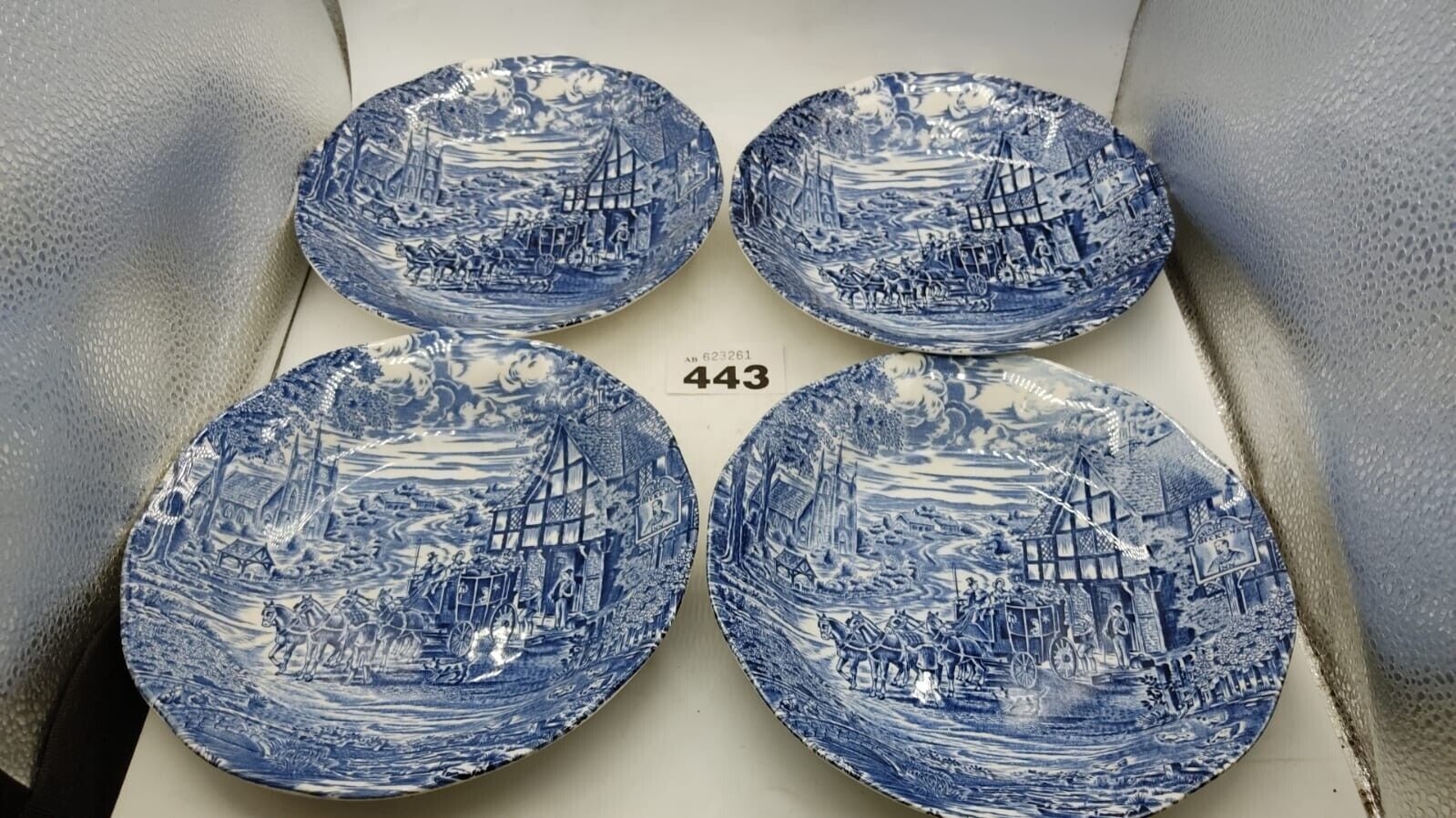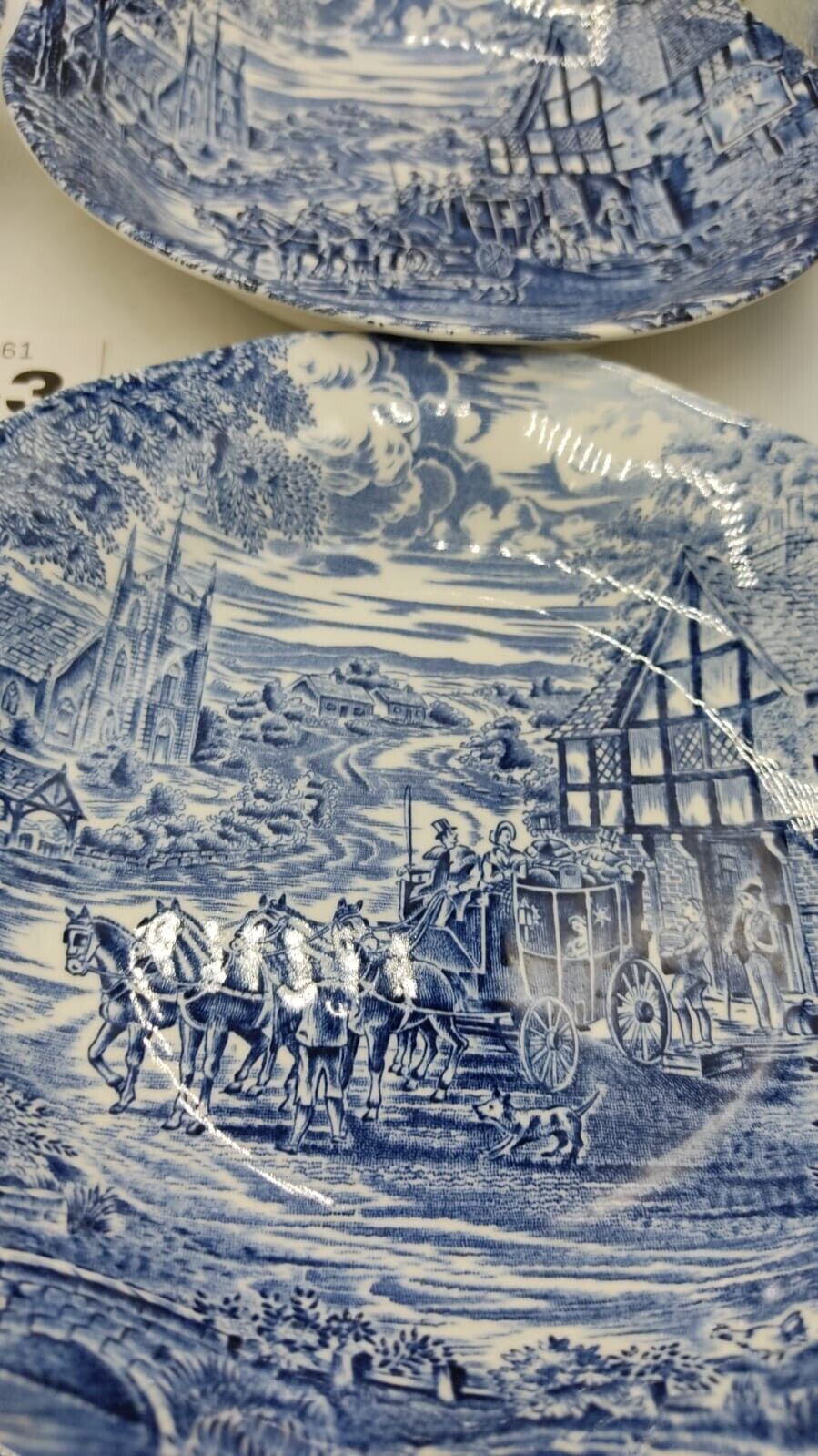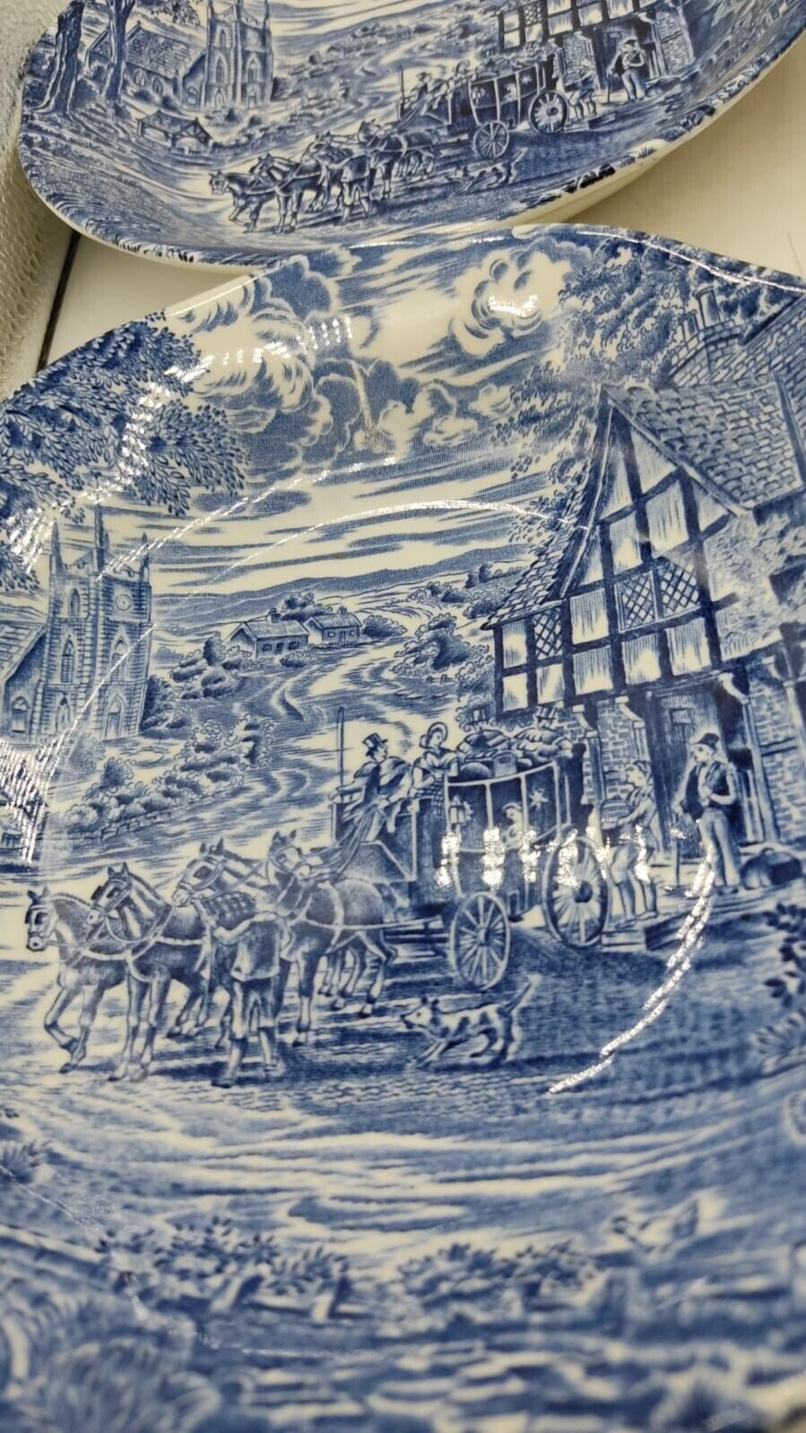 4 Pcs Set Dickens Coaching Days, Kensington Staffordshire Ironstone, Blue Bowls