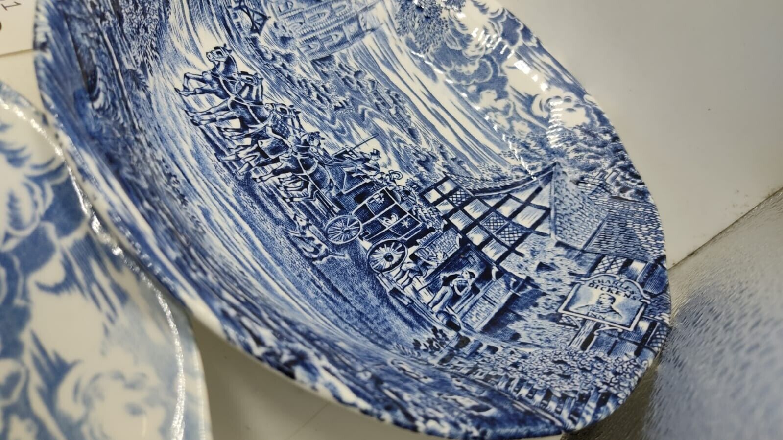 The Dickens Coaching Days pattern, a delightful homage to the Victorian era, unfolds across the surface of these bowls. Rich blue hues dance gracefully against a pristine white background, depicting scenes of classic coaching days in a style reminiscent of antique transferware. This set encapsulates the charm of a bygone era, offering a glimpse into the past while bringing a touch of sophistication to your table.