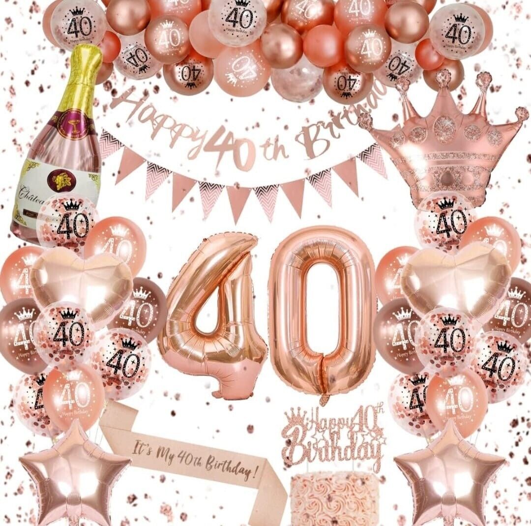 40th Birthday Decoration for Women Rose Gold 40th Balloons Banner Triangle Flag