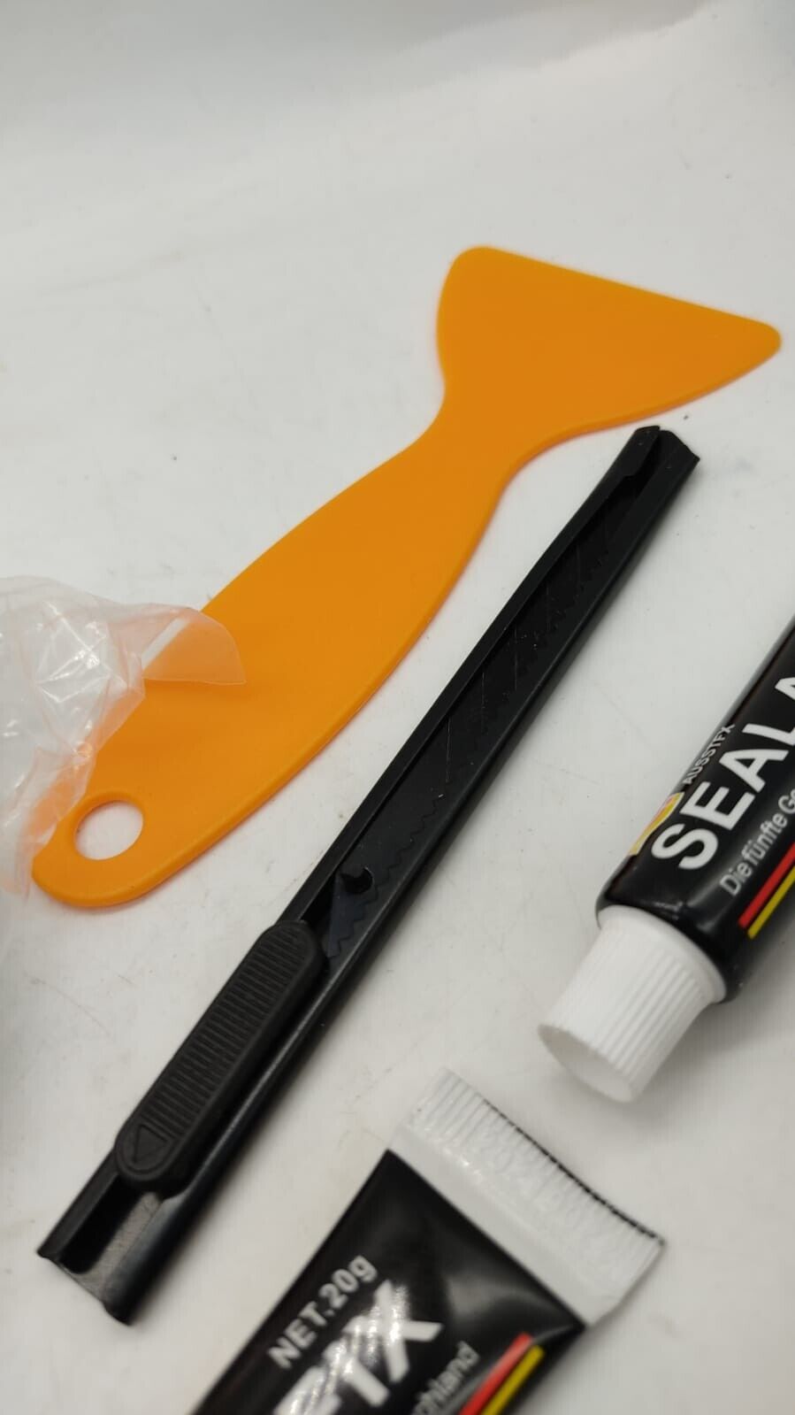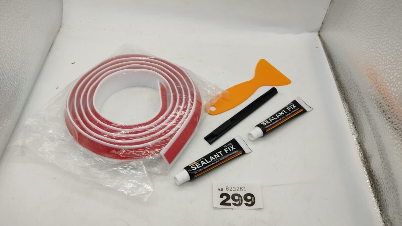 The set includes a high-quality sealing strip, designed to provide a durable barrier against water leakage. The included sealant and tools are essential for ensuring a precise and effective application. For detailed measurements and application guidance, please refer to the images provided.