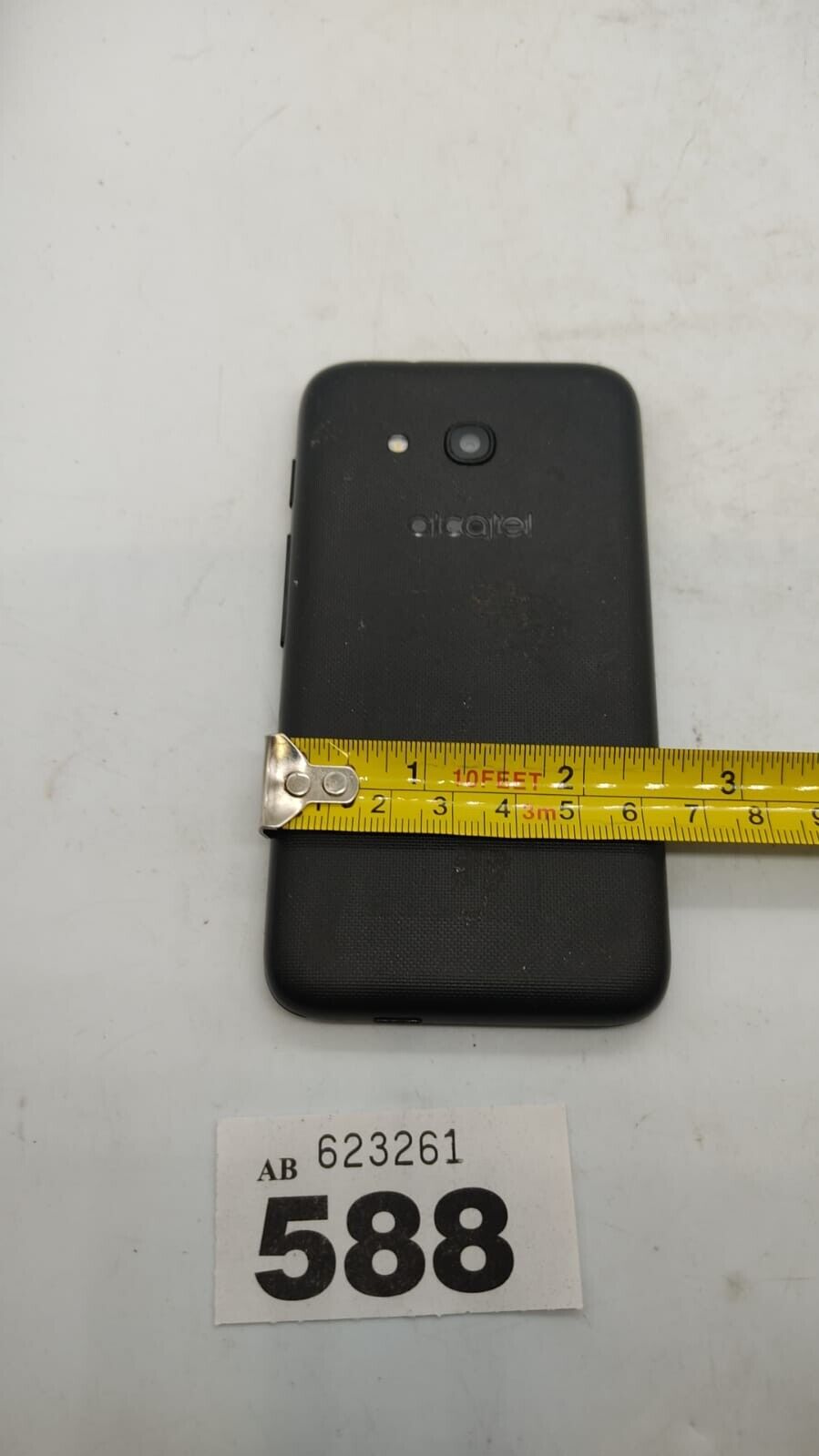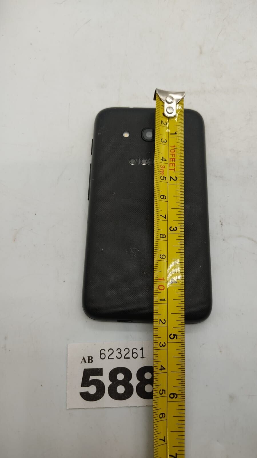 The fair condition of this Alcatel One Touch is transparently depicted through pictures, offering a clear view of the device's wear and tear. These images also include measurements, allowing you to assess the Alcatel One Touch's size and form factor.