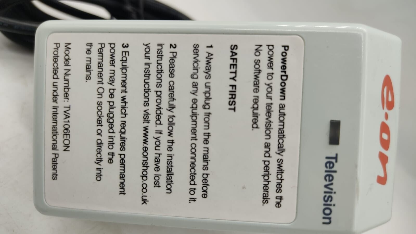 Whether you're looking to reduce energy waste, create automated schedules for your devices, or remotely control power usage, the E-ON TVA106EON Powerdown Smart Plug provides a practical and effective solution. Embrace the benefits of a smarter, more energy-efficient home setup with this dependable and well-preserved smart plug.