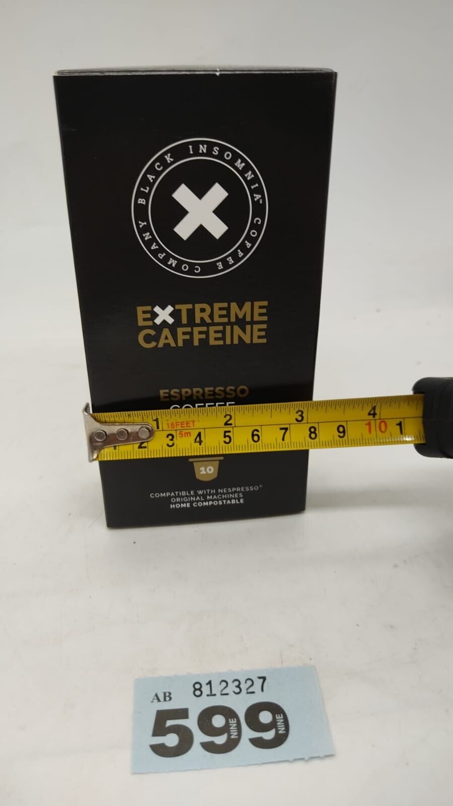 Introducing Nespresso© 10 Coffee Pods in the bold and intense Black Insomnia flavor, crafted for those who crave an extreme caffeine kick. Each cup delivers a whopping 1105mg of caffeine, providing an unparalleled energy boost. While these pods are past their best-before date, it's essential to remember that coffee pods can often remain perfectly enjoyable and safe for consumption after this date. The best-before date for these pods is 07/2023.